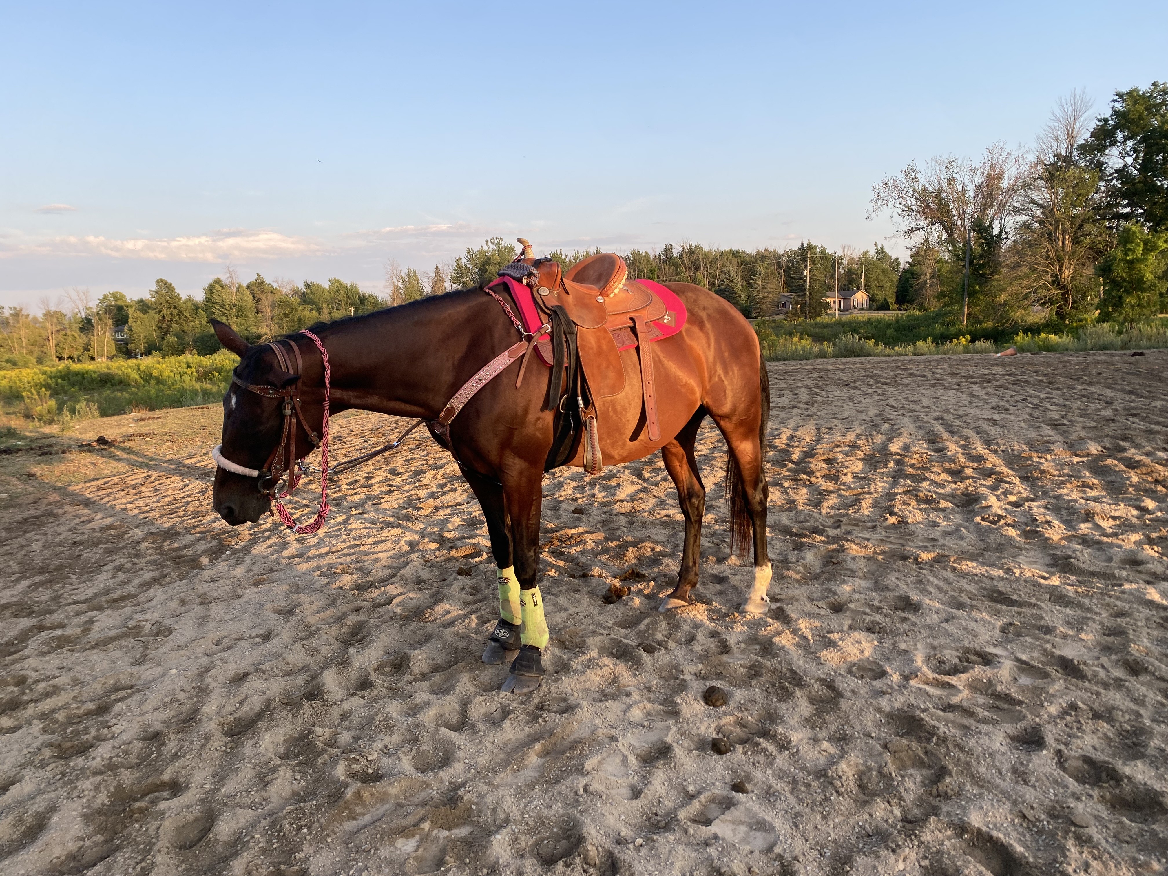 Our first event of the month was the Campbellford Fair Gaming Show, and it truly kicked things off on a high note. We had some incredible luck—Saro placed first in keyhole and third in poles, which was such an exciting way to start the day. To top it off, we were awarded the Top Standardbred Award, which was such an honor and a proud moment for both of us. We also had a strong barrel run that felt amazing, even though we didn’t place in that event. Honestly, I was just so proud of Saro’s effort, heart, and drive.